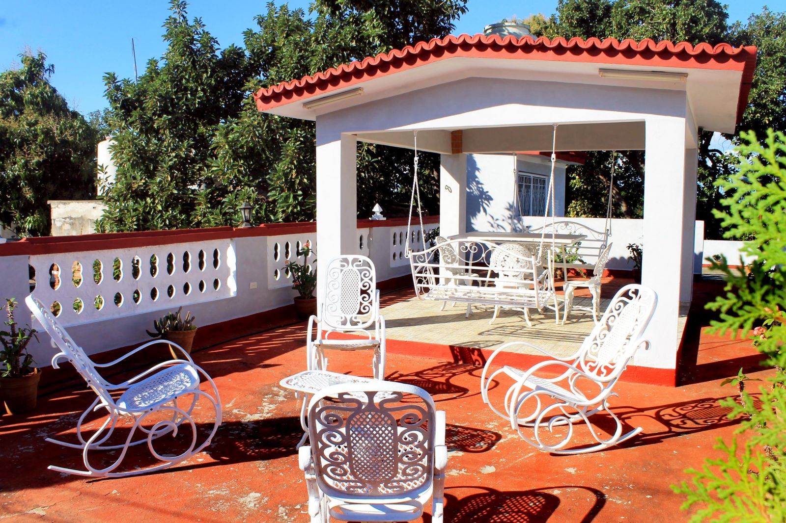 Home It is rented as a complete house or by rooms. The hosts do not live in the house. There is a terrace on the second level, with panoramic views of the villa, with chairs, tables, loungers, 2 hammocks and 2 swings. We also have a ranch and a patio, perfect for having breakfast outdoors or simply enjoying the shadows of its trees.